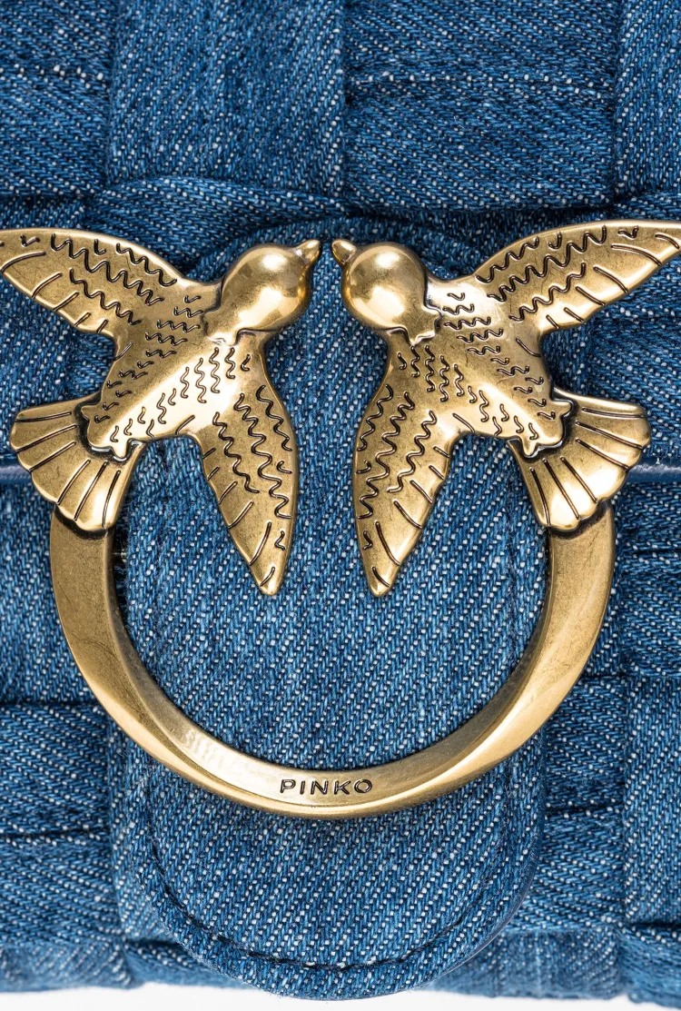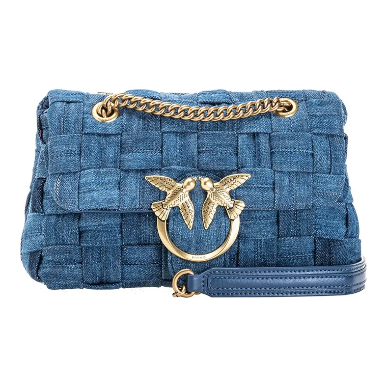 PINKO Puff Хлопок Swallow Сумка Сумка с цепочкой Сумка через плечо Мини Женская Джинсовый синий