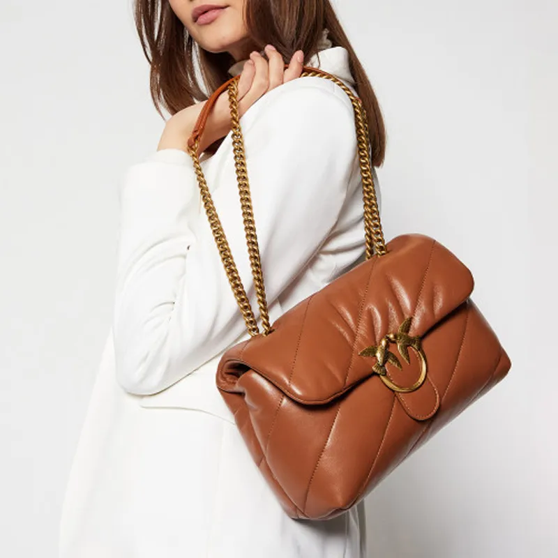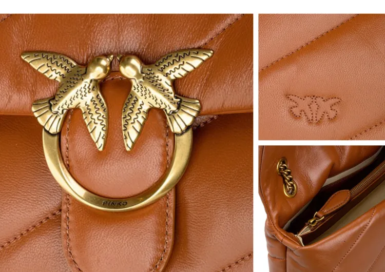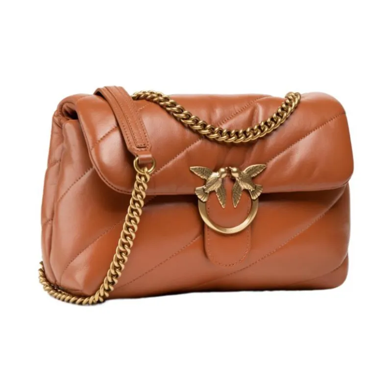 PINKO Puff Sheepskin Pillow Bag Swallow Bag Shoulder Bag Women's Color Cognac Brown