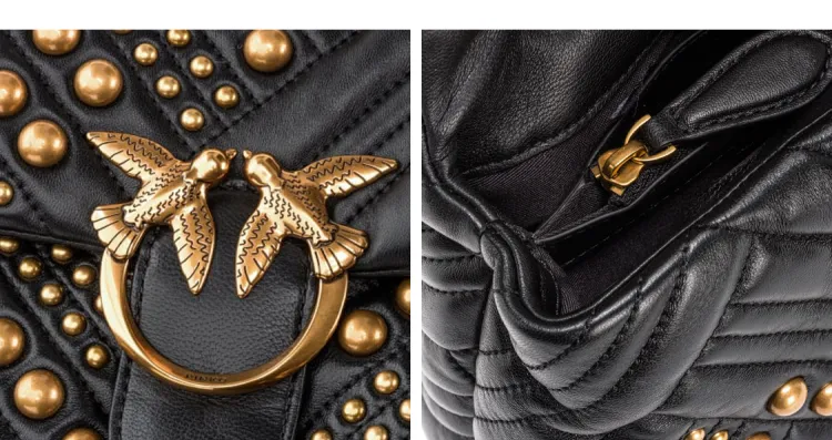 PINKO Puff Овчина Swallow Сумка Сумка через плечо Большая Женская Черная