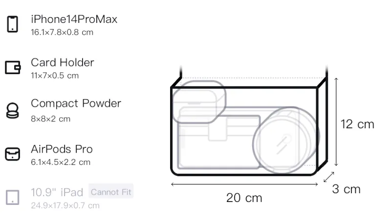 Д20*Ш3*В12см