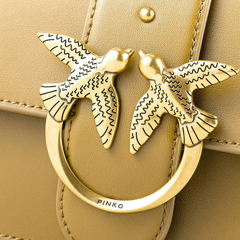 PINKO SIMPLY GRAIN LEATHER Swallow Сумка Сумки через плечо Сумка на плечо Мини Женская Верблюжий Коричневый