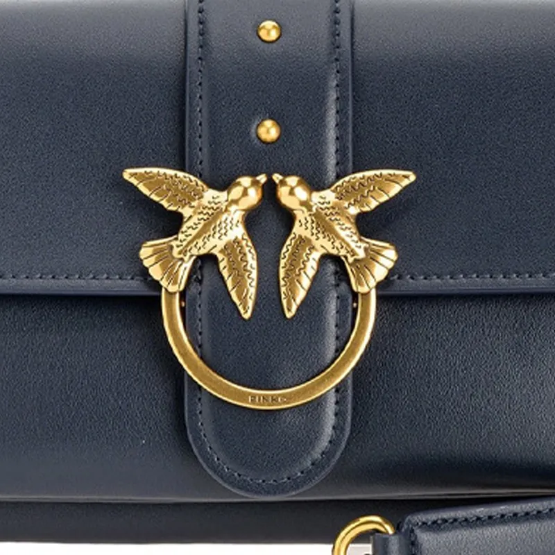 PINKO SIMPLYPINKO Мягкая кожа Swallow Сумка Конверт Сумка Сумка через плечо Маленькая Женская Темно-синяя
