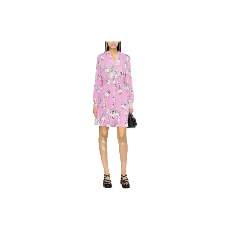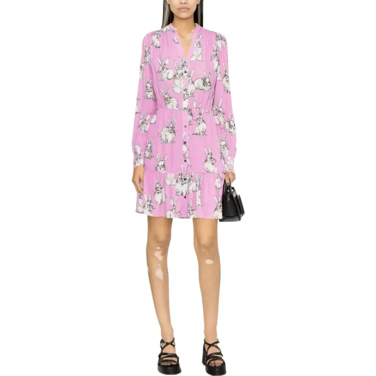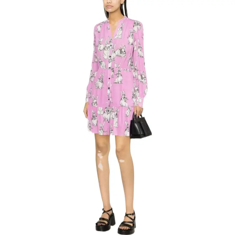 PINKO SS23 Длинное Платье с Длинными Рукавами Женское Розовое