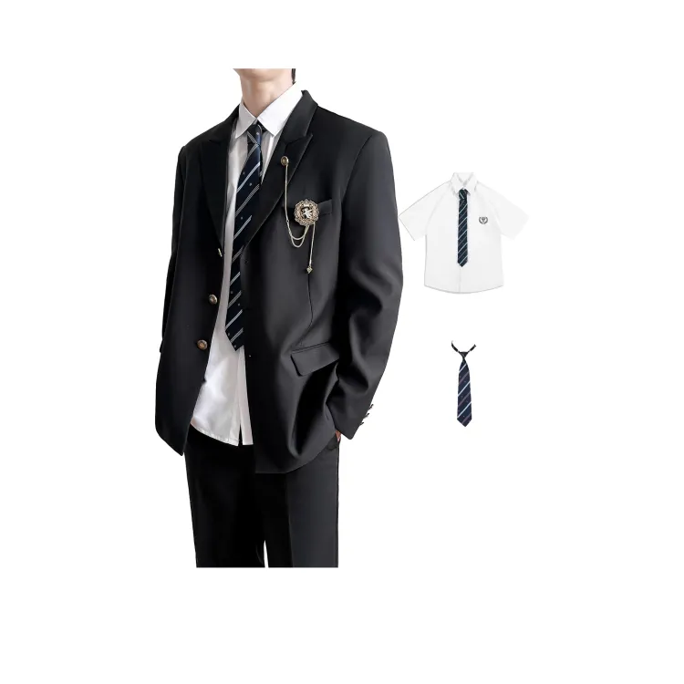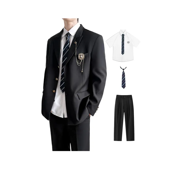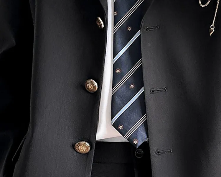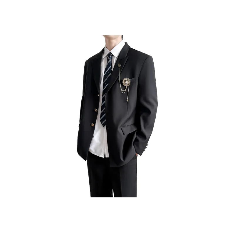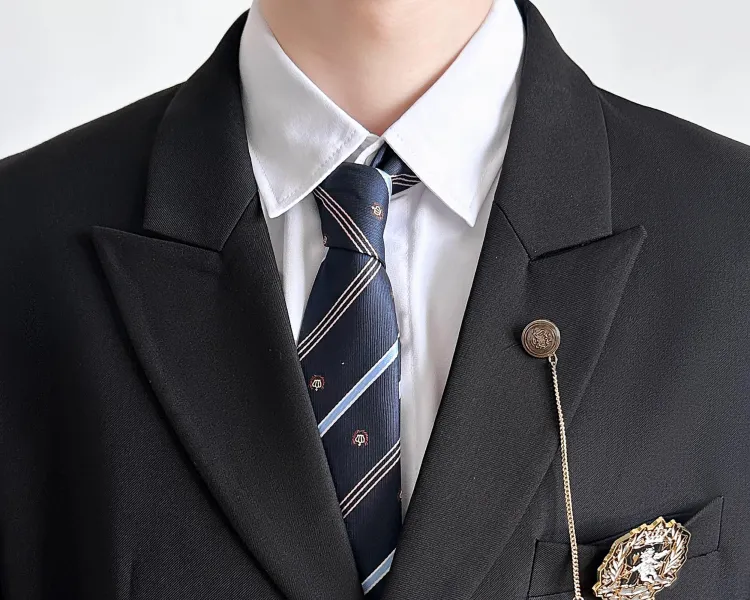 Black Coat + Shirt + Dark Blue Tie + Black Pants