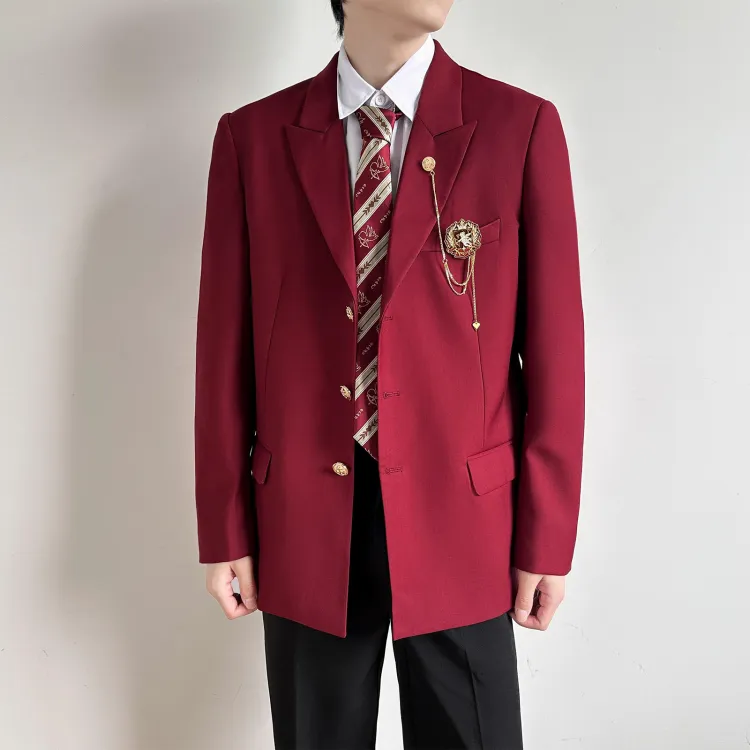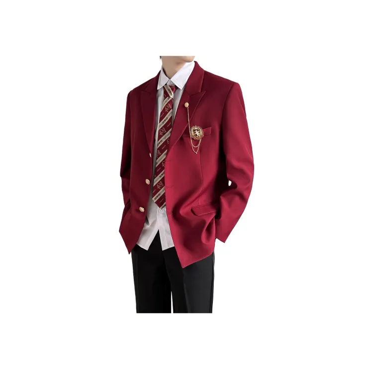 Red Coat + Shirt + Dark Blue Tie + Black Pants