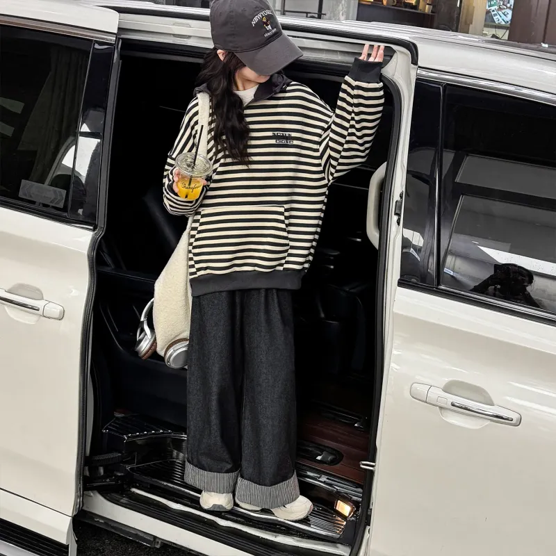 Цвет:Полосы С капюшоном Толстовки и Свитшоты с флисовой подкладкой