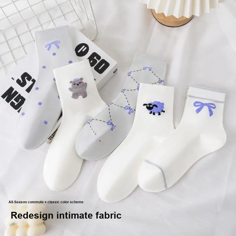 PLANDOO 1 каждого из 5 цветов Женские носки MID до икры