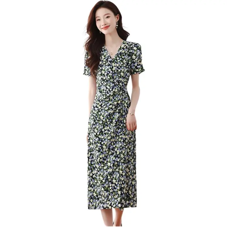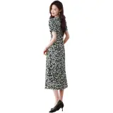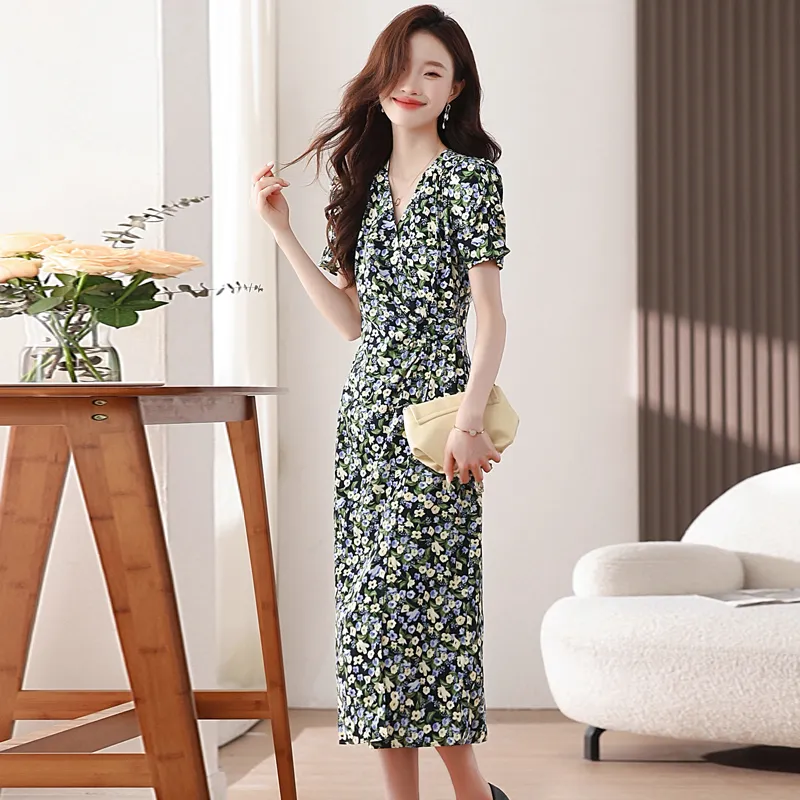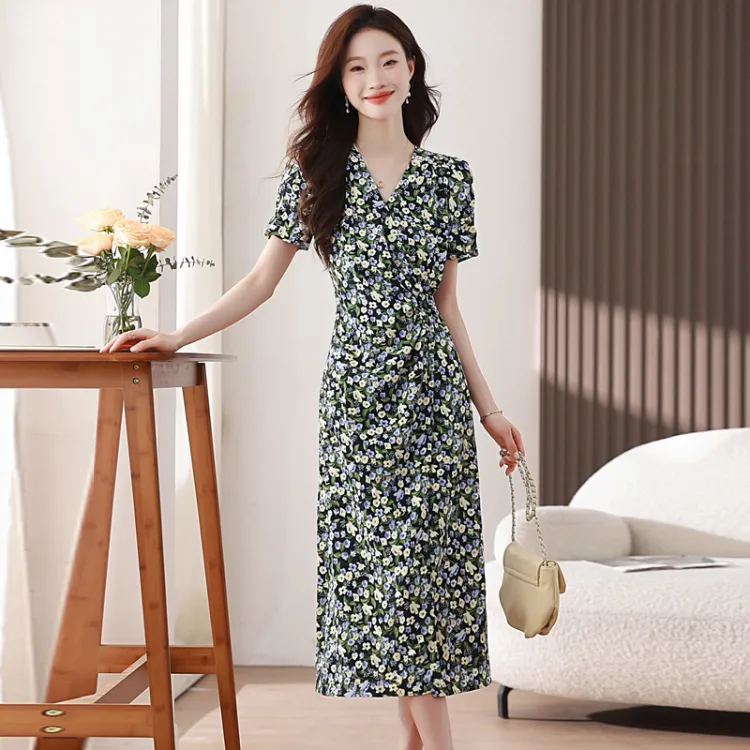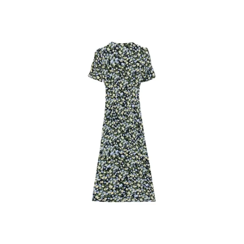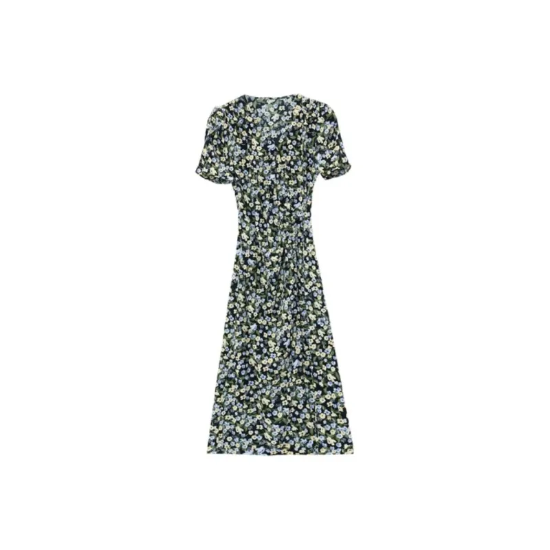 PLANE DRIFT Короткий рукав Платье Женское Синие цветок