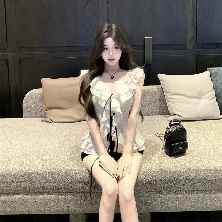 PLANE DRIFT Бежево-абрикосовый гороховый узор женские футболки