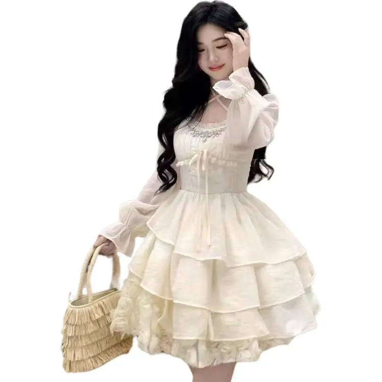 PLAY BUSH Длинное платье с длинными рукавами женское белое