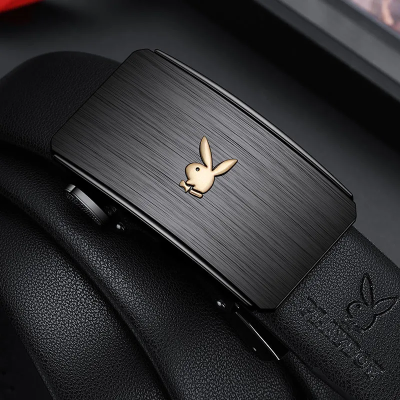 PLAYBOY Коллаборация Плетеная ткань Спилок коровьей кожи Ремень Автоматическая застежка Мужской 3,5 см