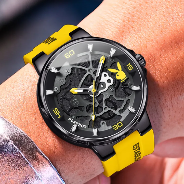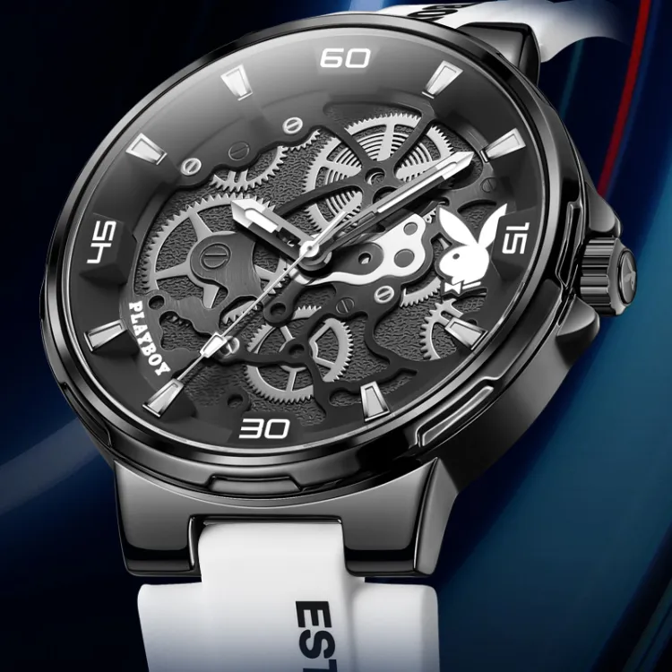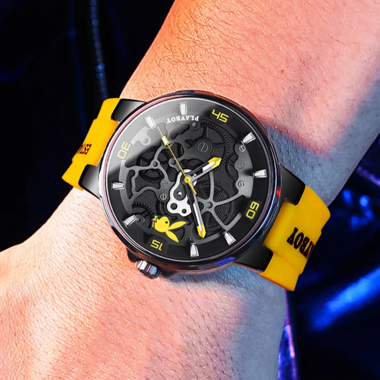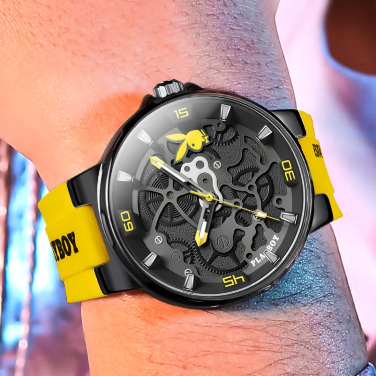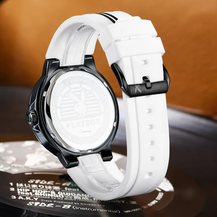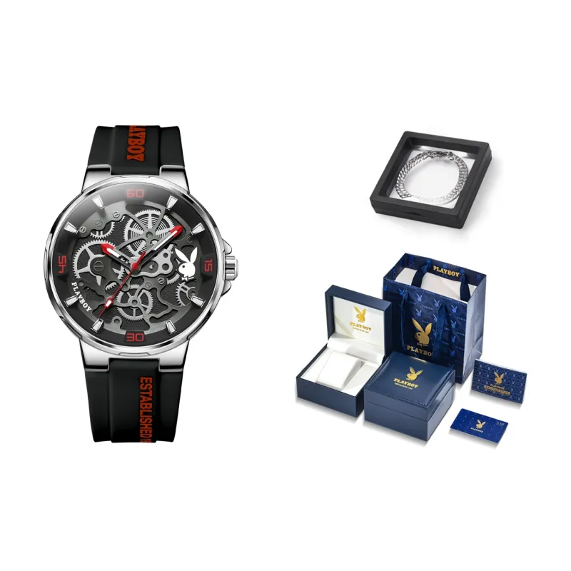 Playboy Кварцевый механизм силиконовый ремешок мужские часы черный циферблат