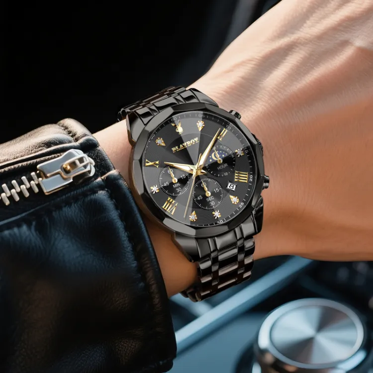 Playboy Кварцевый механизм Мужские часы 42 мм Черный