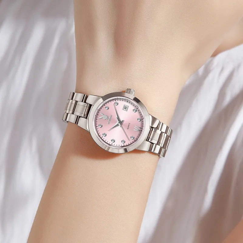 Playboy Vintage Collection Кварцевый механизм ремешок из нержавеющей стали женские часы розовый циферблат