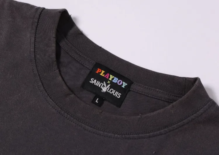 SSSAINT LOUIS SSSAINT LOUIS X Playboy Co Branded SERIES Промытый черный Унисекс T Рубашки