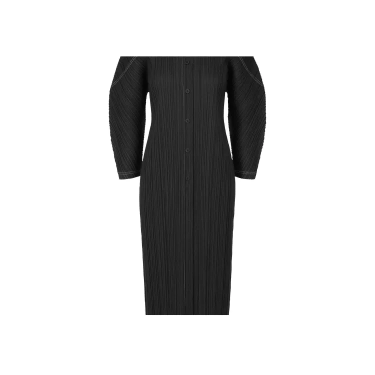 PLEATS PLEASE ISSEY MIYAKE FW24 Длинное платье с длинным рукавом женское черное