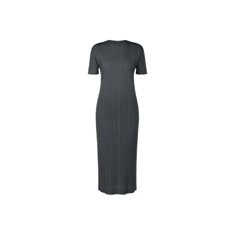 PLEATS PLEASE ISSEY MIYAKE Короткий рукав Платье Женское Уголь