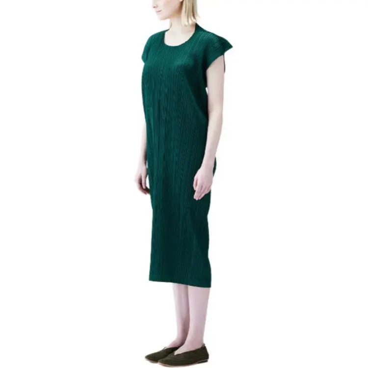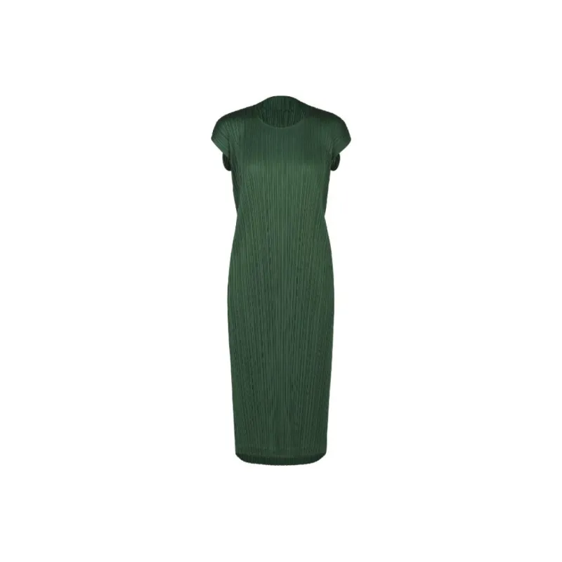 PLEATS PLEASE ISSEY MIYAKE Короткий рукав Платье Женское Темно-зеленый