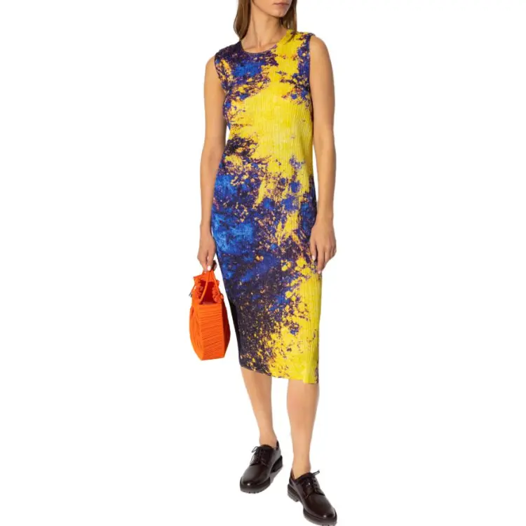 PLEATS PLEASE ISSEY MIYAKE Желтое Женское Платье без рукавов