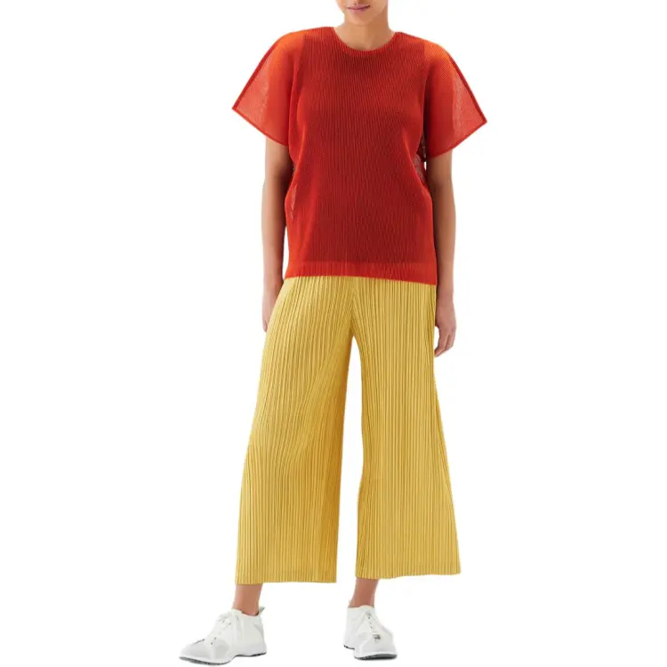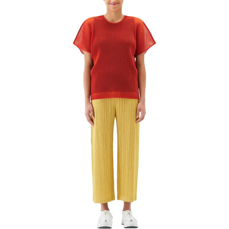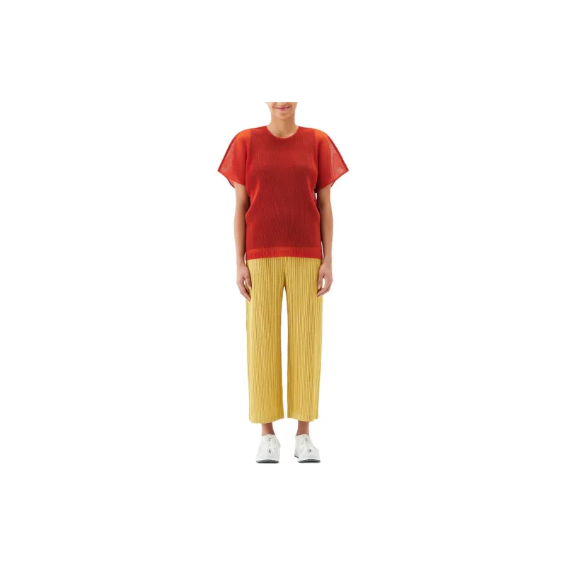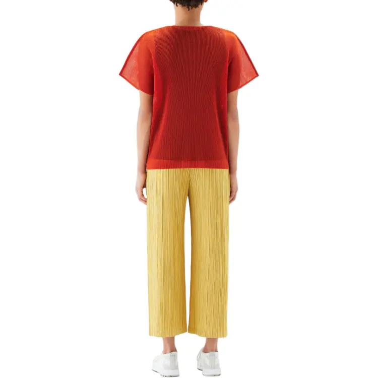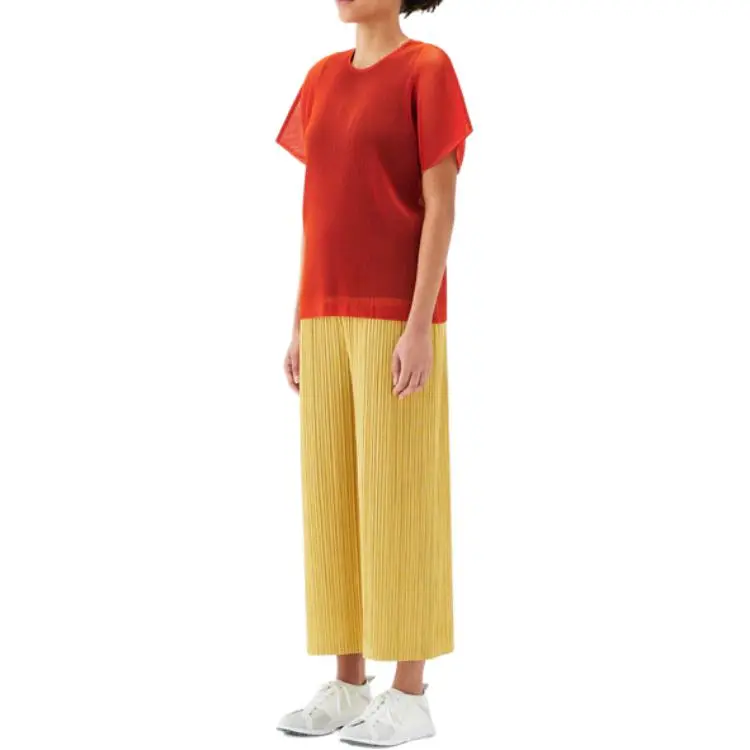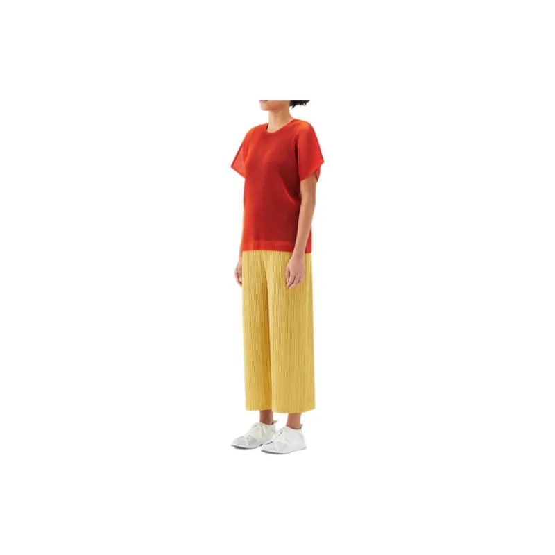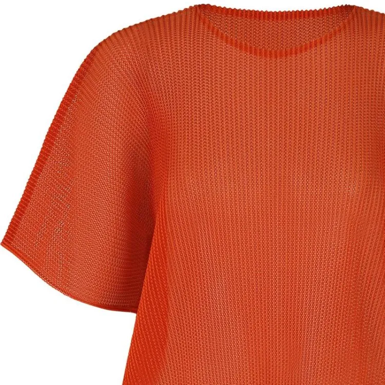 PLEATS PLEASE ISSEY MIYAKE Однотонный Круглый вырез Свободный крой Короткий рукав Рубашка T Рубашка Женская Апельсин