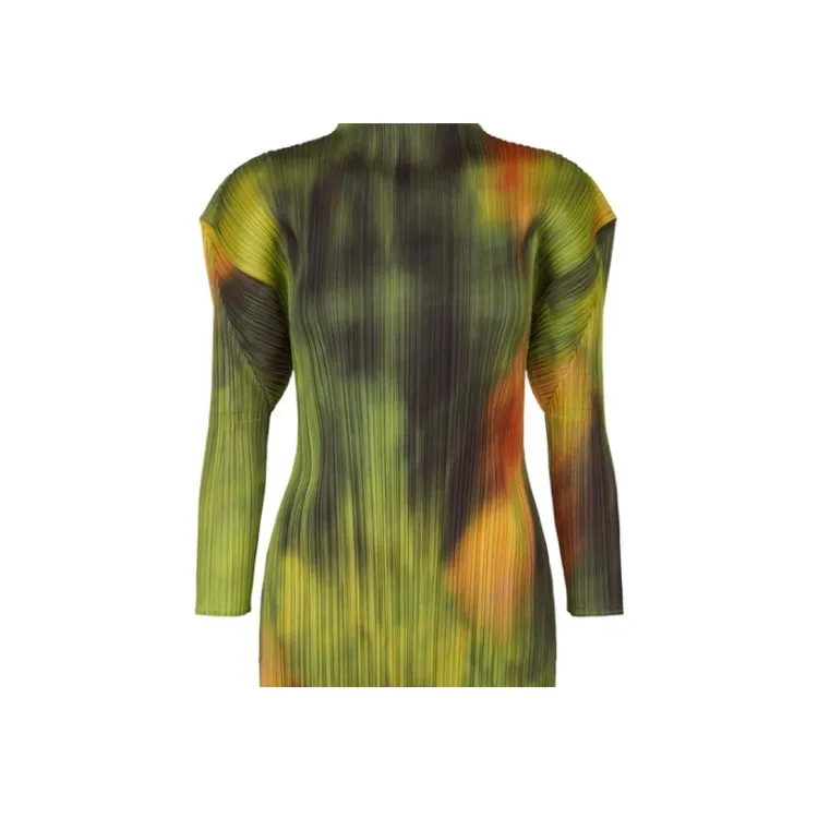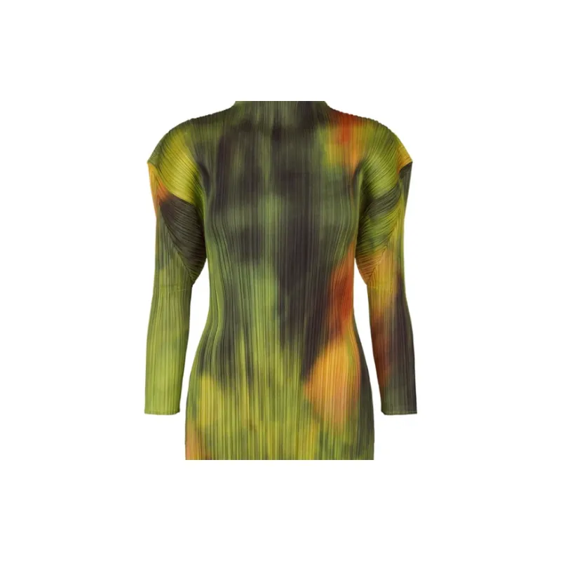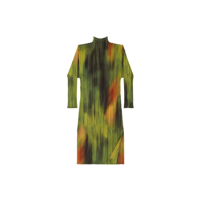 PLEATS PLEASE ISSEY MIYAKE SS24 Длинное платье с длинными рукавами женское цвет шпинатный зеленый