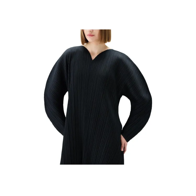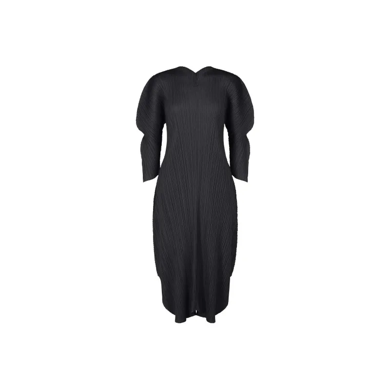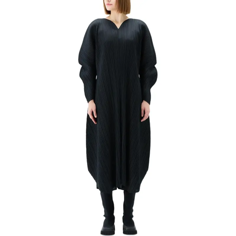 PLEATS PLEASE ISSEY MIYAKE FW24 Длинное платье с длинным рукавом женское черное