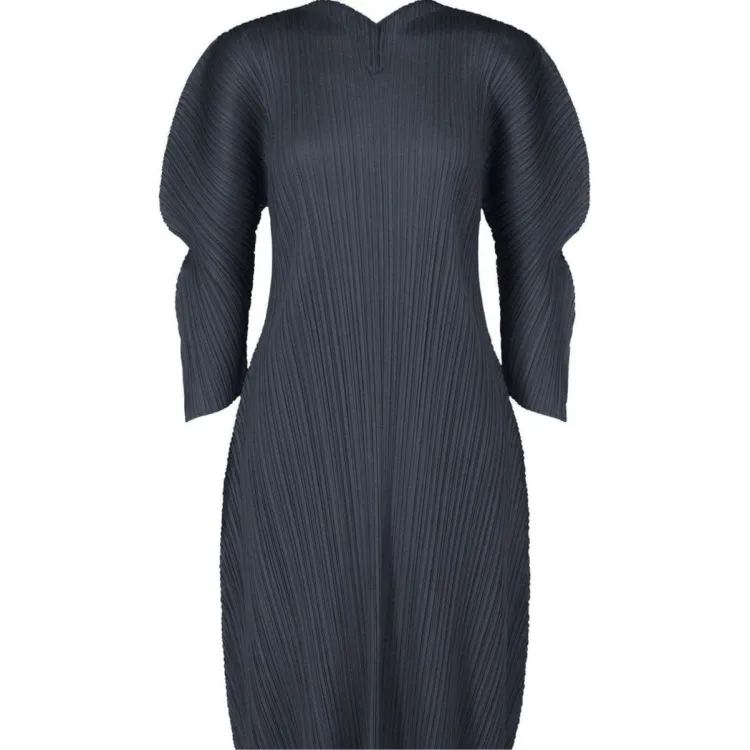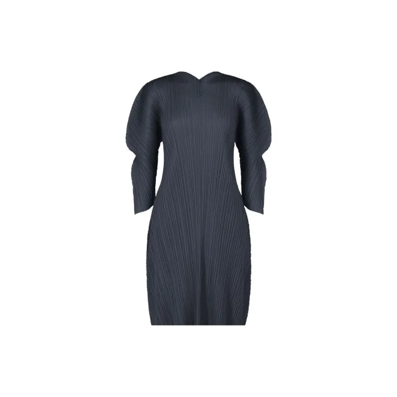 PLEATS PLEASE ISSEY MIYAKE FW24 Длинное платье с длинным рукавом женское морской синий
