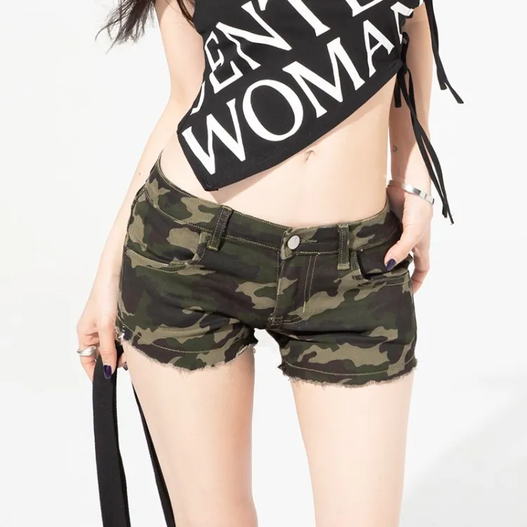 Белый медведь Американский стиль VIBE Универсальный Удобный Низкий Шов для похудения Прохладный Камуфляж Джинсовые шорты Женские