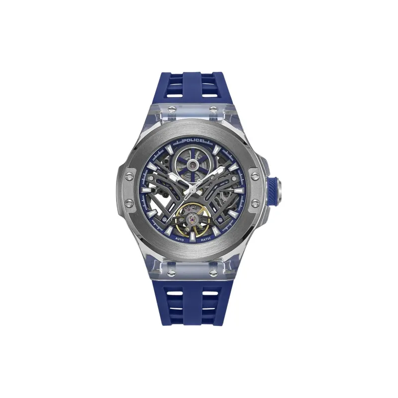 Police Мужские часы Автоматический механический механизм Резиновый ремешок 44 мм Черепный циферблат Часы для мужчин
