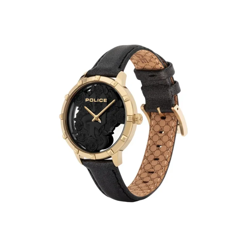 Police Watch Кварцевый механизм Кожаный ремешок 36 мм Черный циферблат Унисекс