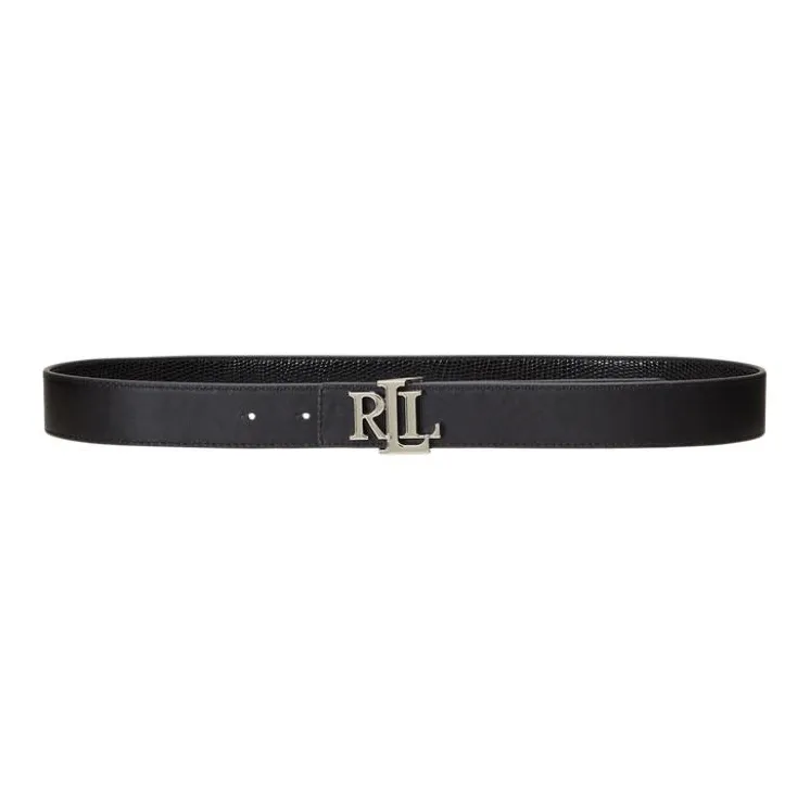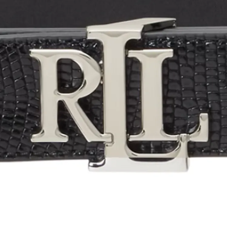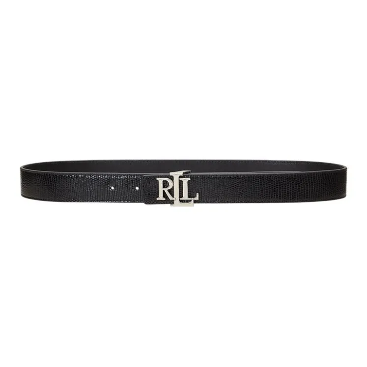 Polo Ralph Lauren Значок Дизайн Коровья кожа Металл Кожаные ремни Женские Черный Ширина 3,2CM