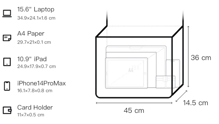 Д45*Ш14,5*В36см