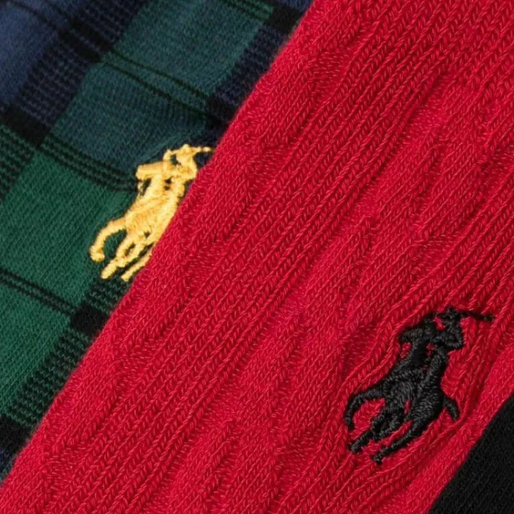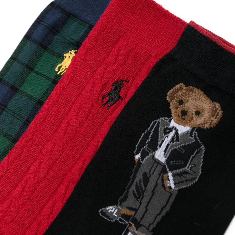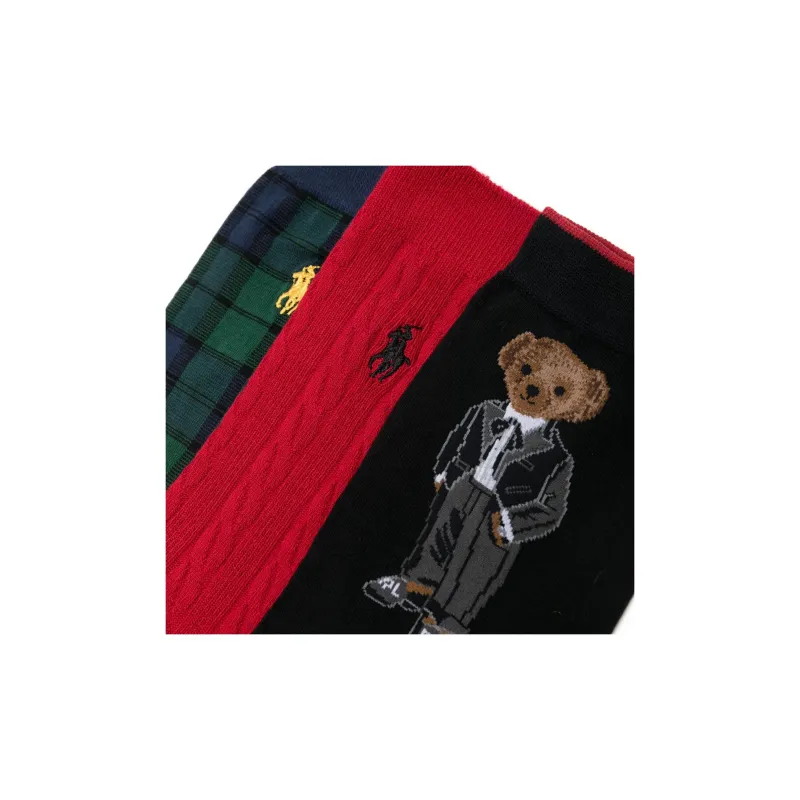 Polo Ralph Lauren FW24 Носки Crew Унисекс 3 пачки Алый + Морской Синий Лесной Зеленый + Черный
