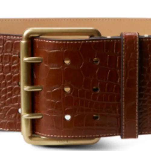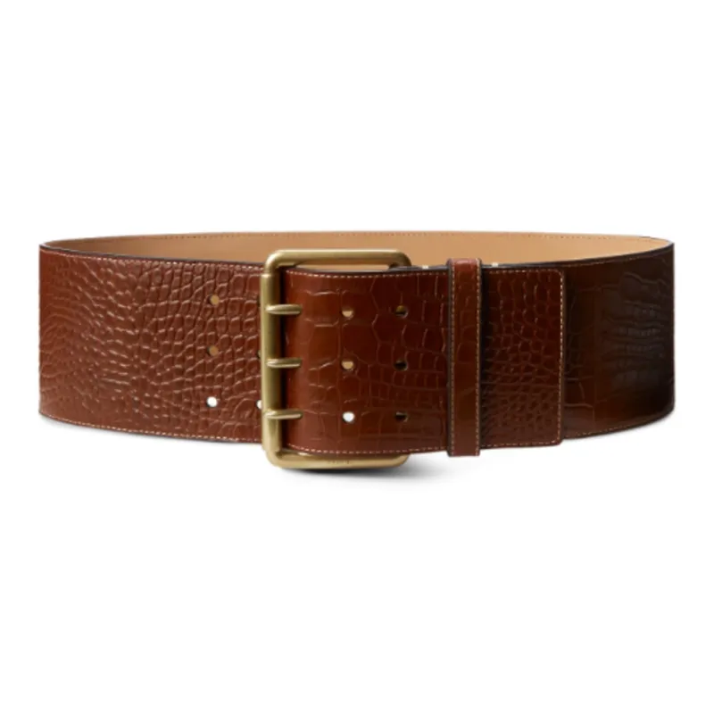 Polo Ralph Lauren Имитация Крокодила Узор Тисненая Шпилька Телячья Кожа Кожаные Ремни Женские Коричневый Ширина 8,8 см