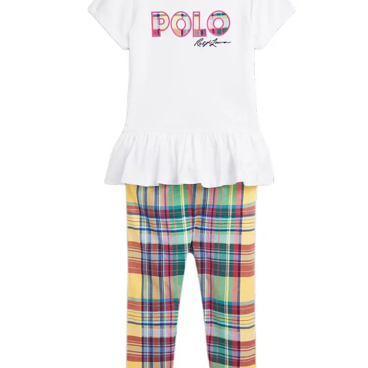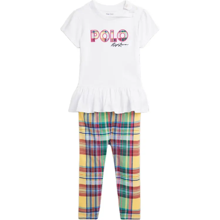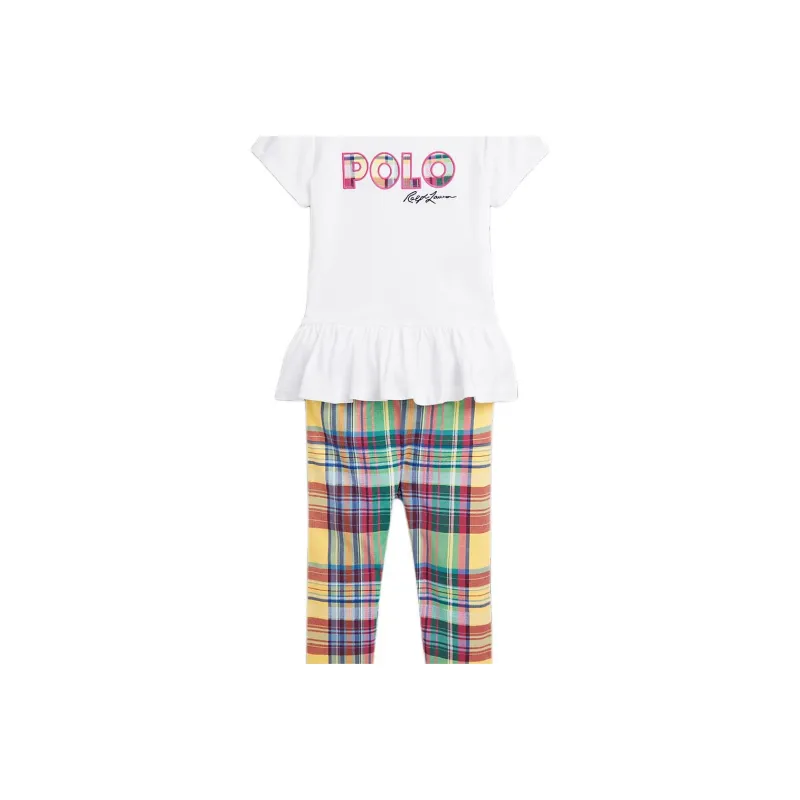 Polo Ralph Lauren Комбинезон Логотип Джерси T Рубашка и Клетчатый Леггинсы Набор Infant and Toddler