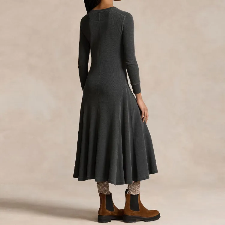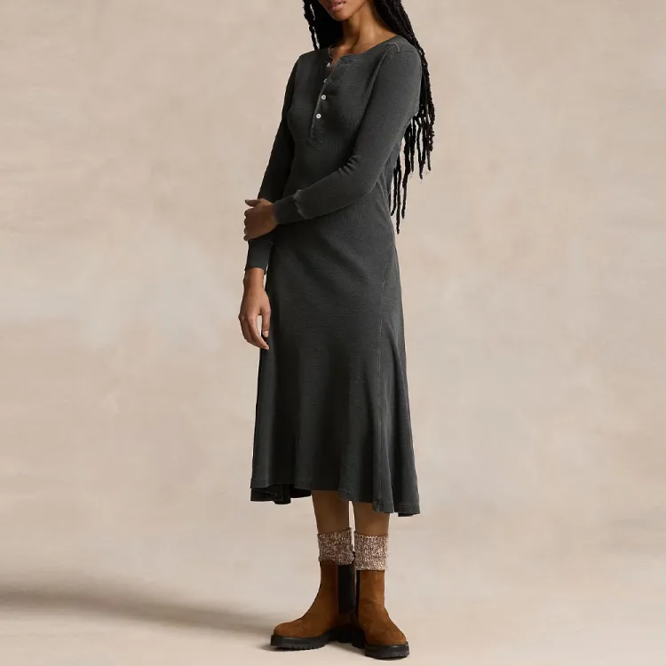 Polo Ralph Lauren Длинное платье с длинными рукавами женское черное и серое