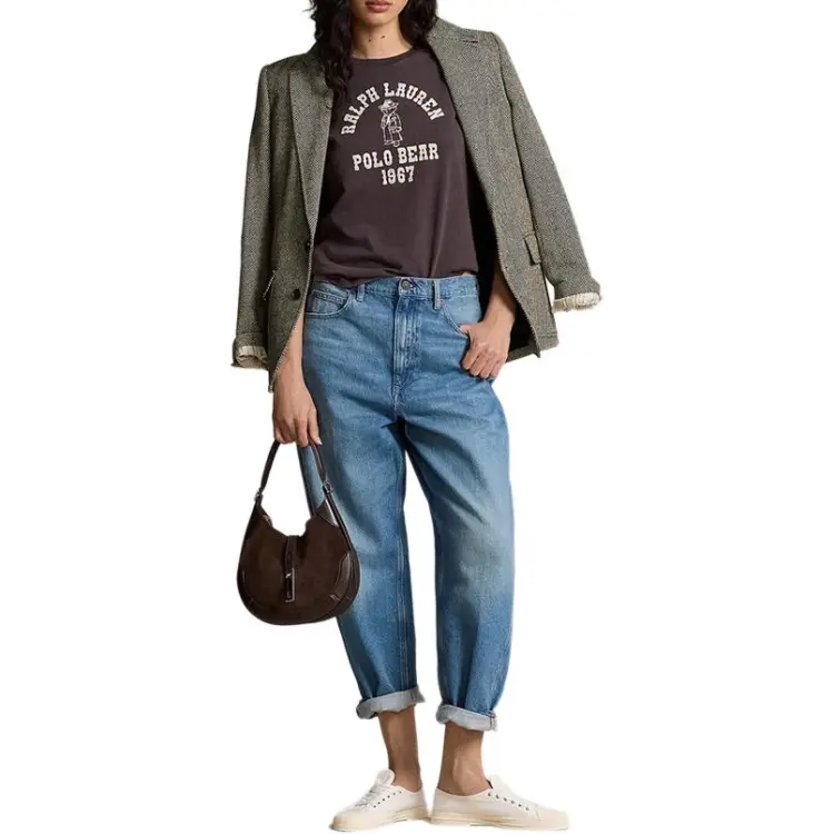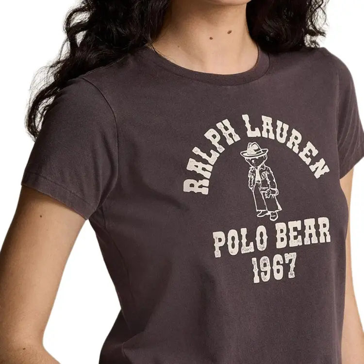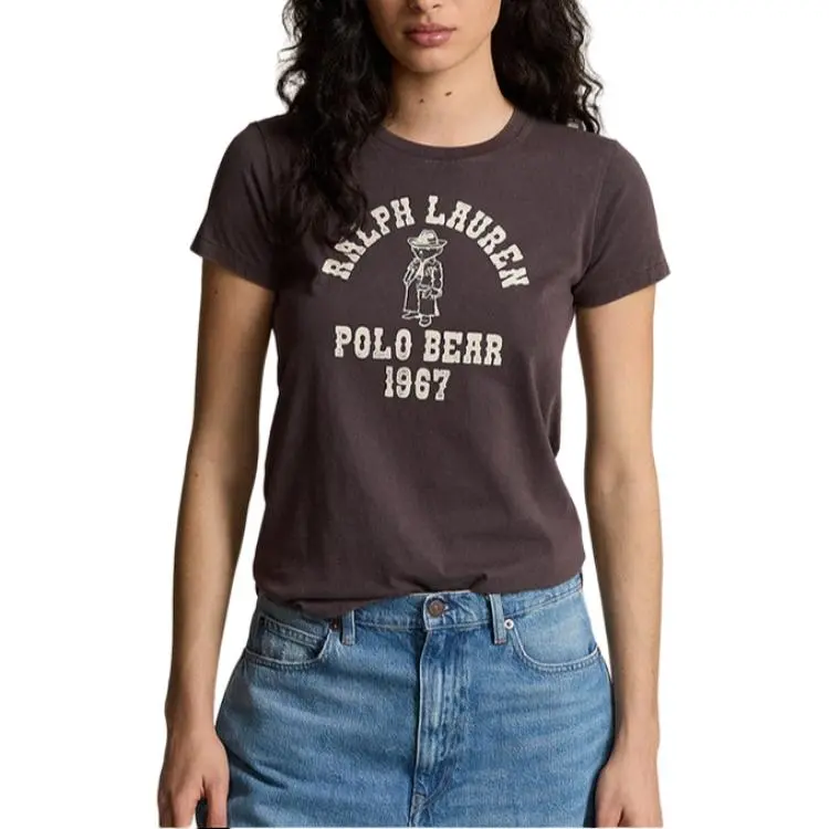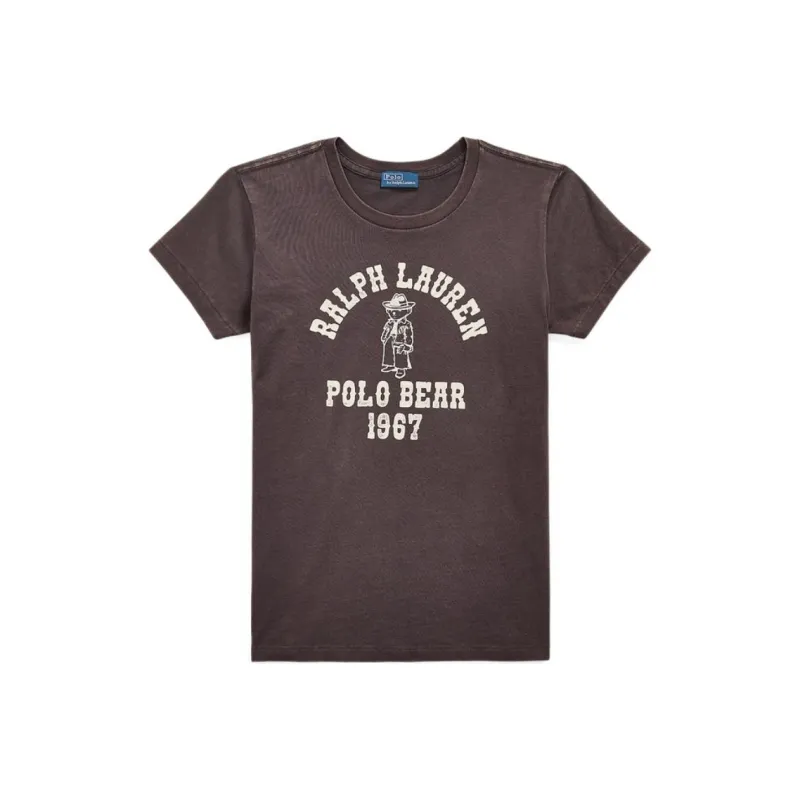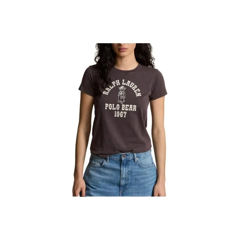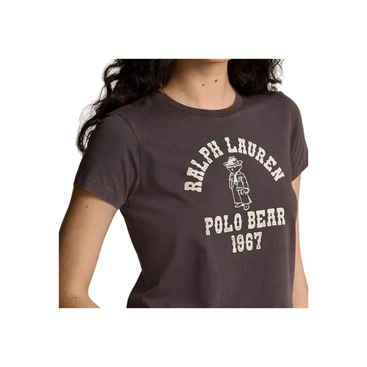 Polo Ralph Lauren Logo Letter Принт Круглый вырез Прямой крой Короткий рукав Т-рубашка Т-рубашка Женская Pebble Черный