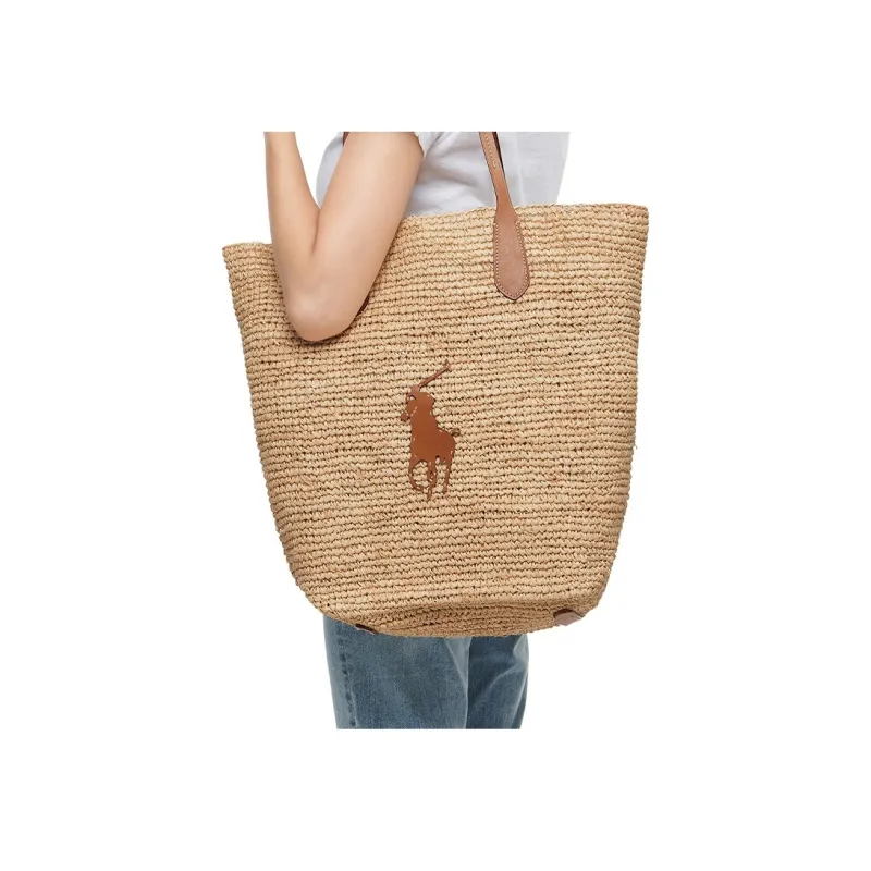 Polo Ralph Lauren Рафия с кожаными вставками одно плечо сумка унисекс бежевый
