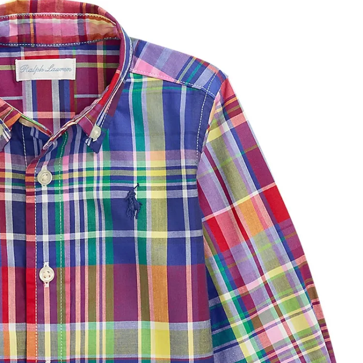 Polo Ralph Lauren Рубашка FW24 Стандартный крой Синий Красный Для малышей и детей дошкольного возраста