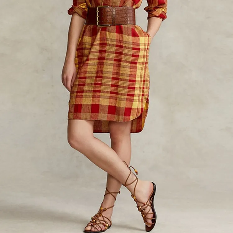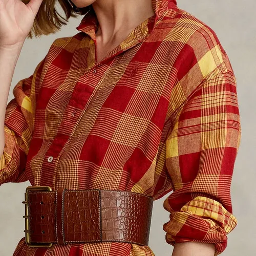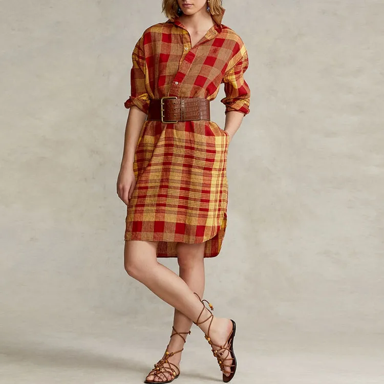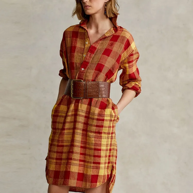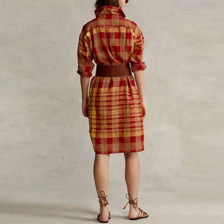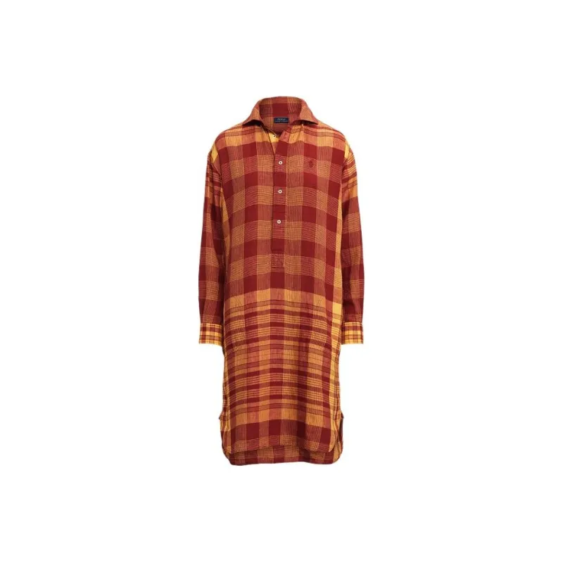 Polo Ralph Lauren SS22 Длинное Платье с Длинными Рукавами Женское Красное