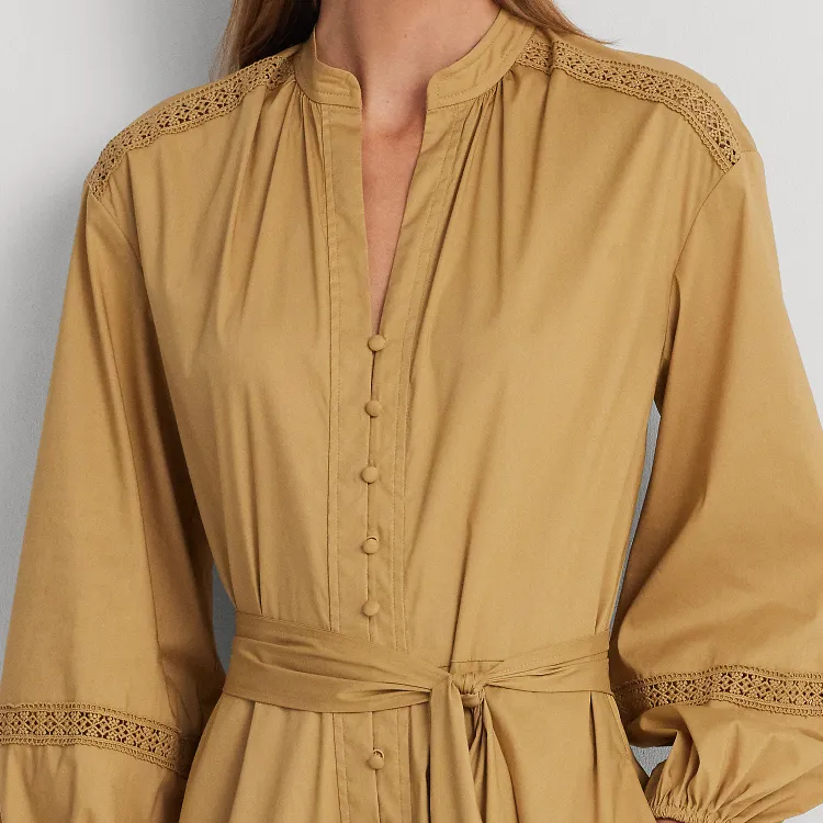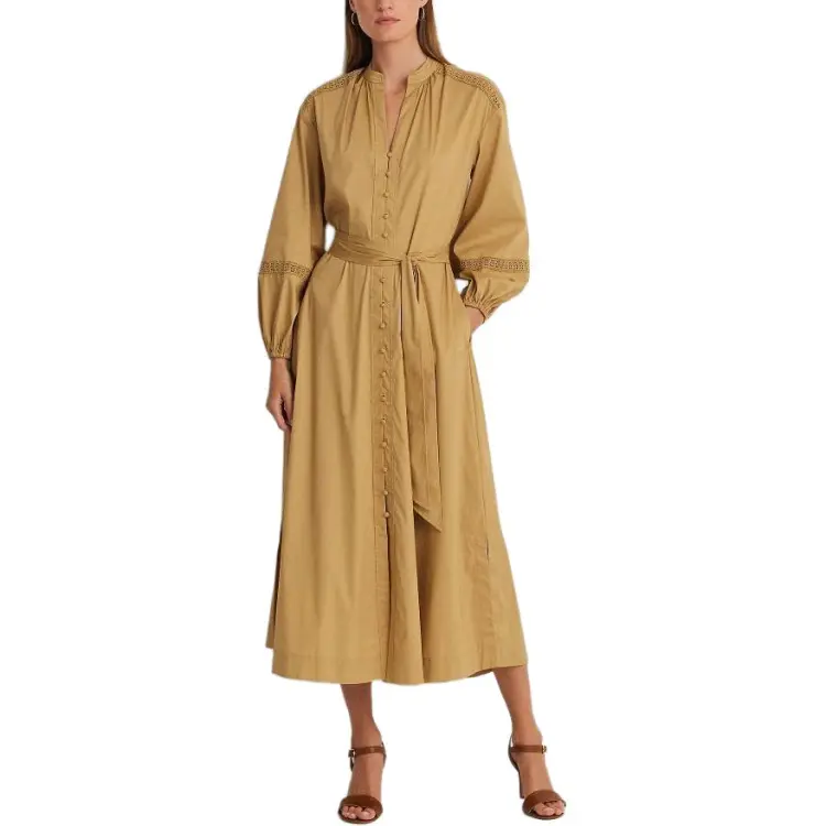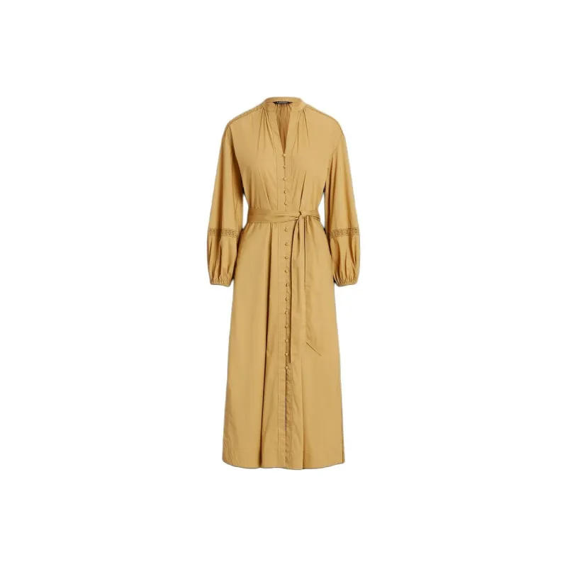 Polo Ralph Lauren SS24 Длинное платье с длинными рукавами женское хаки