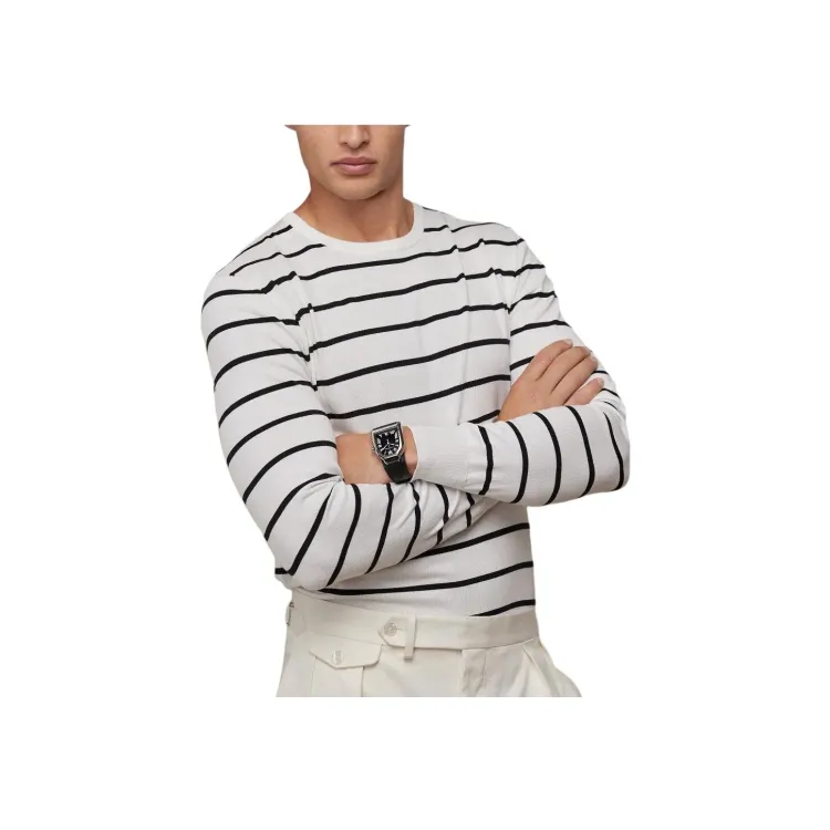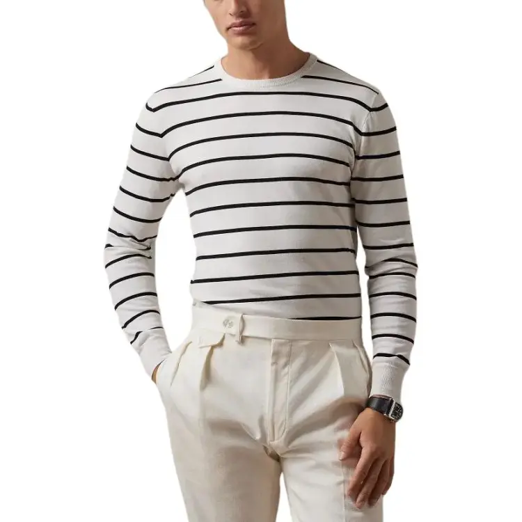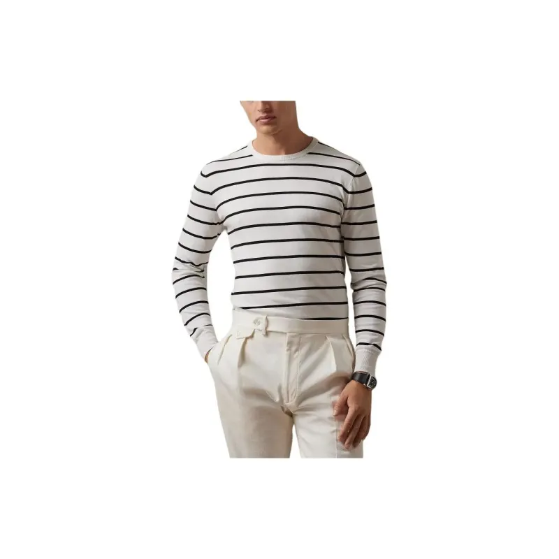 Polo Ralph Lauren Полосатый Хлопок Круглый вырез Свитер Рубашка Мужская Белая