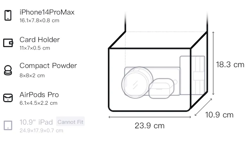 Д23,9*Ш10,9*В18,3 см