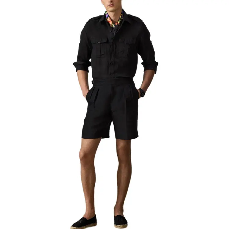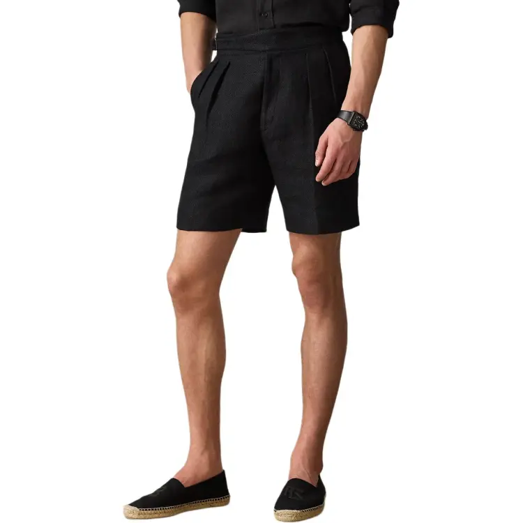 Polo Ralph Lauren Tailored Узор "елочка" Linen Silk Short Casual Shorts Men's Black