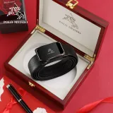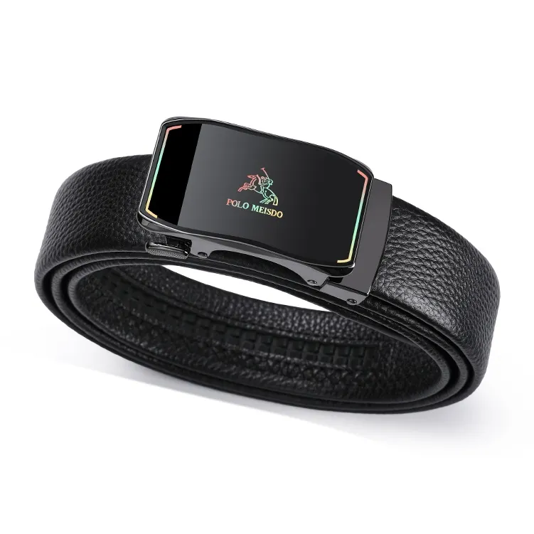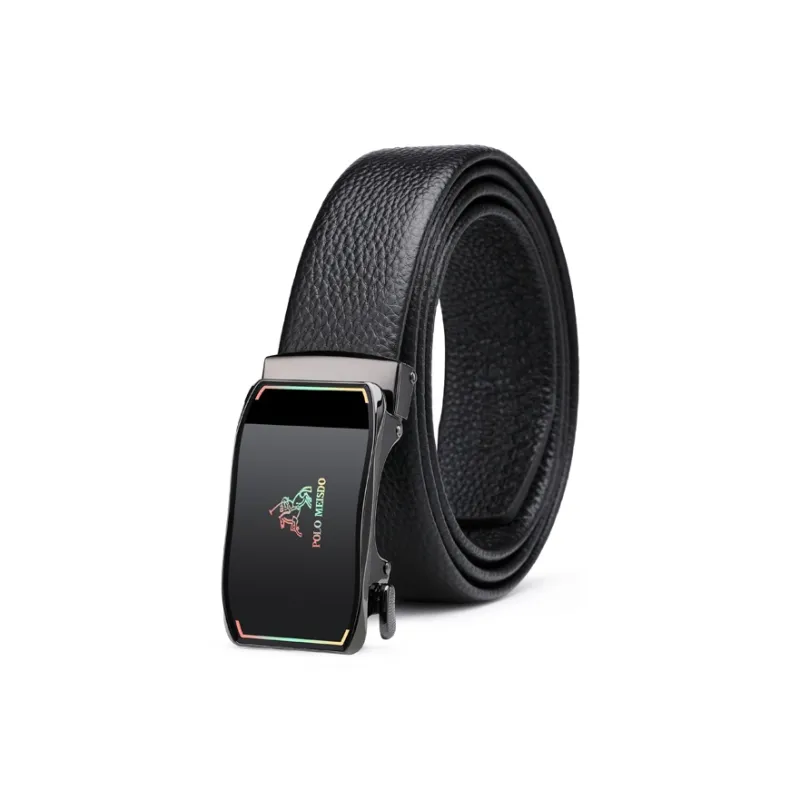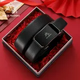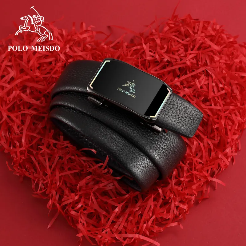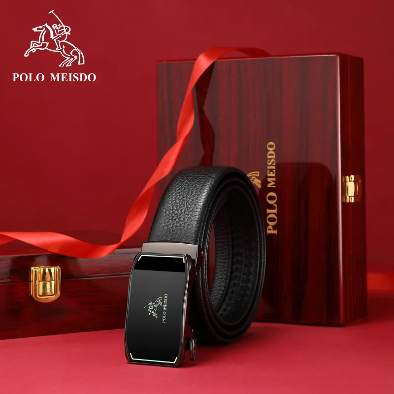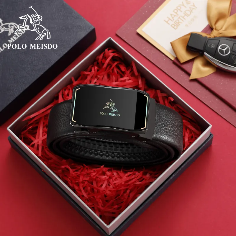 POLOMEISDO Бизнес Мода Лицевой Коровья Кожа Ремень Градиент Глянцевый Металл Премиум Ремень Подарочный Набор Мужской