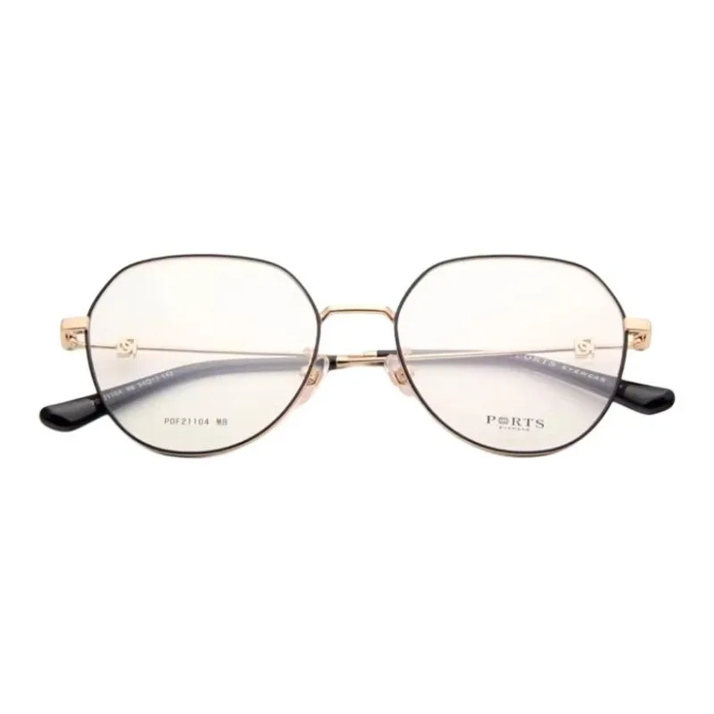 PORTS Alloy Oval Eyeglass Frames Women's Black Gold