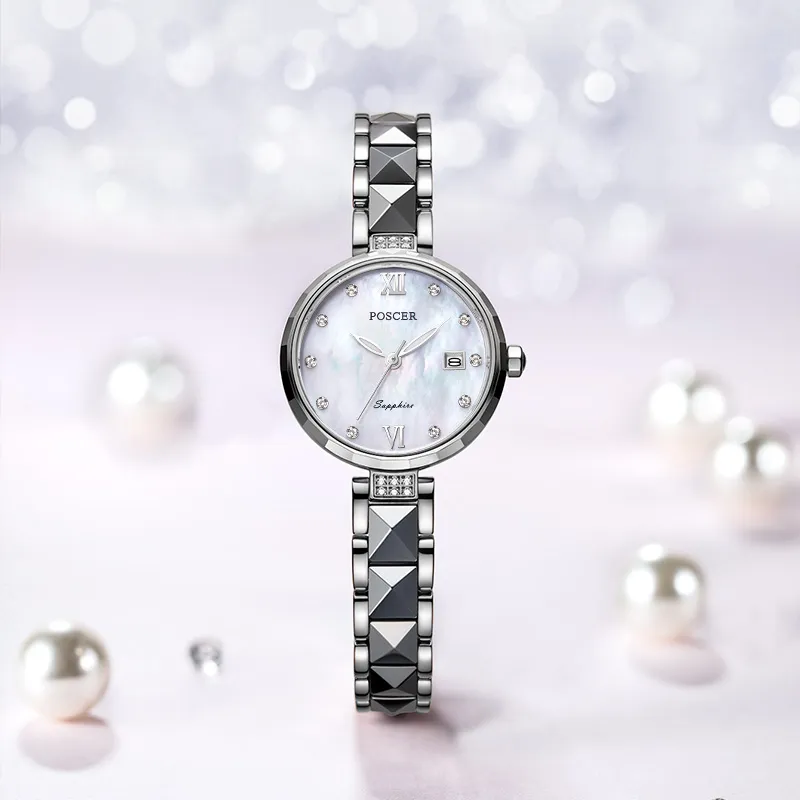 POSCER Кварцевый механизм нержавеющая сталь ремешок для часов женские часы цвет раковины жемчужный циферблат часов
