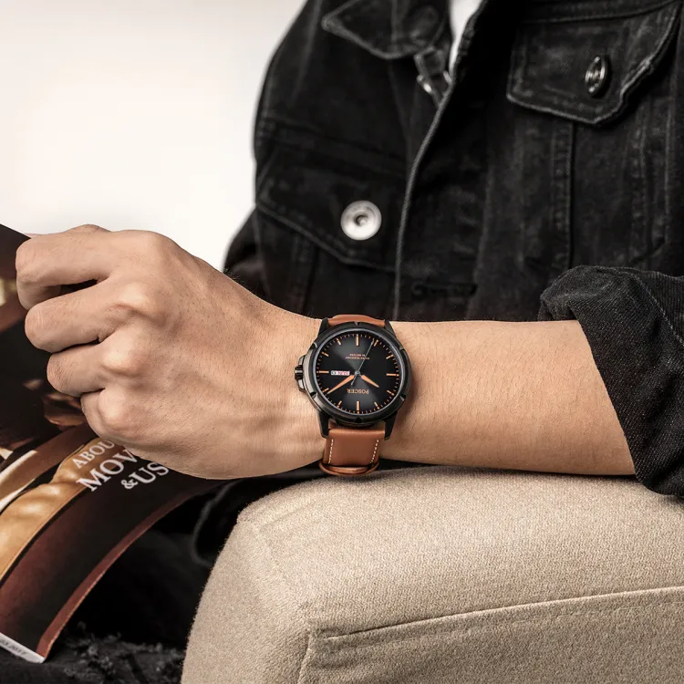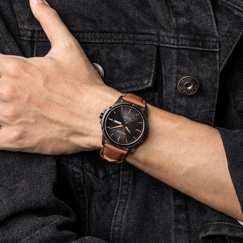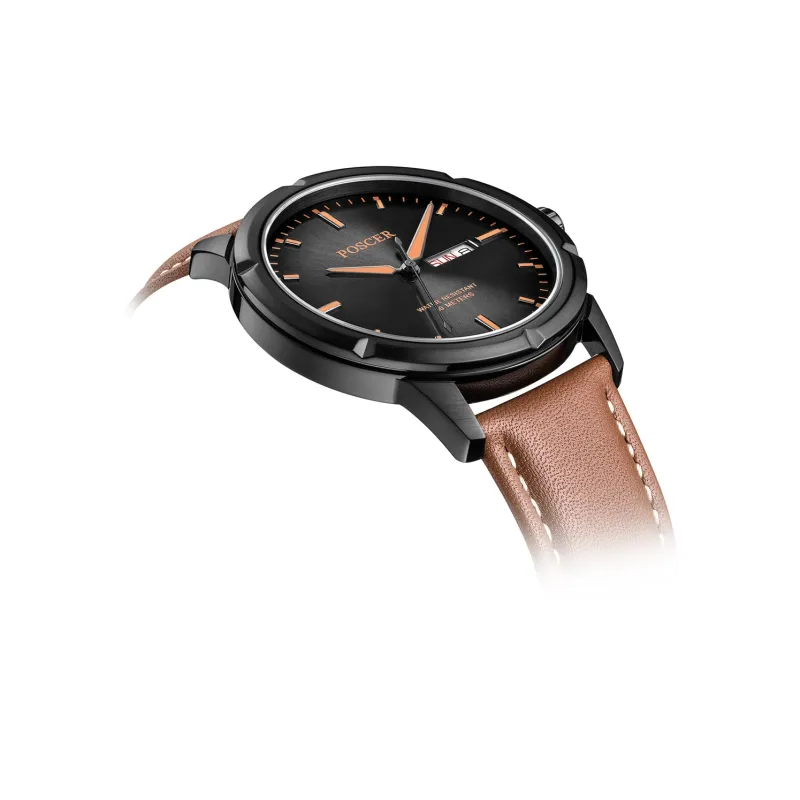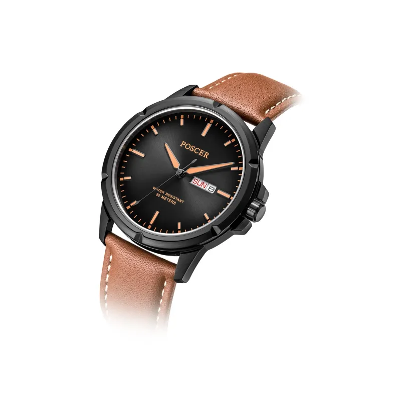 POSCER Кварцевый механизм Часы Мужские Черный циферблат 1005M.BFB