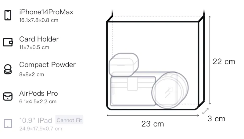 Длина 23 см * Ширина 3 см * Высота 22 см