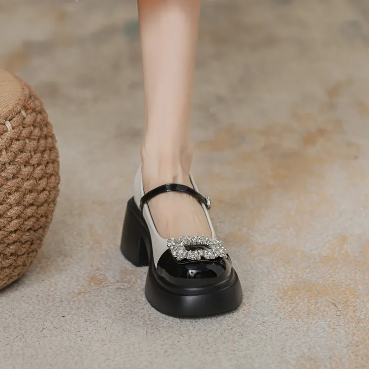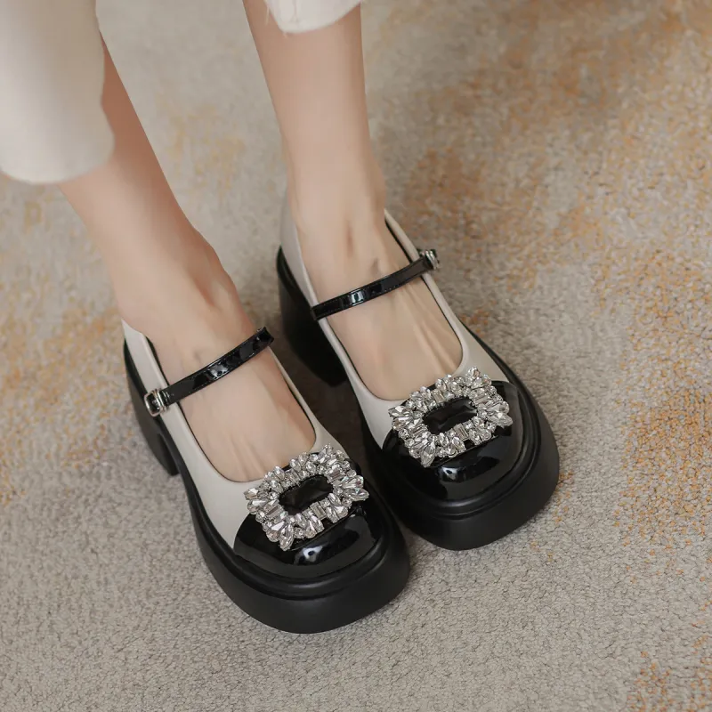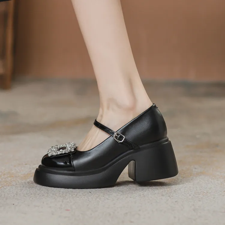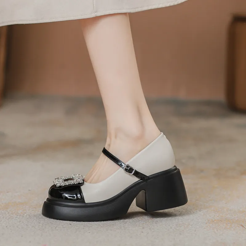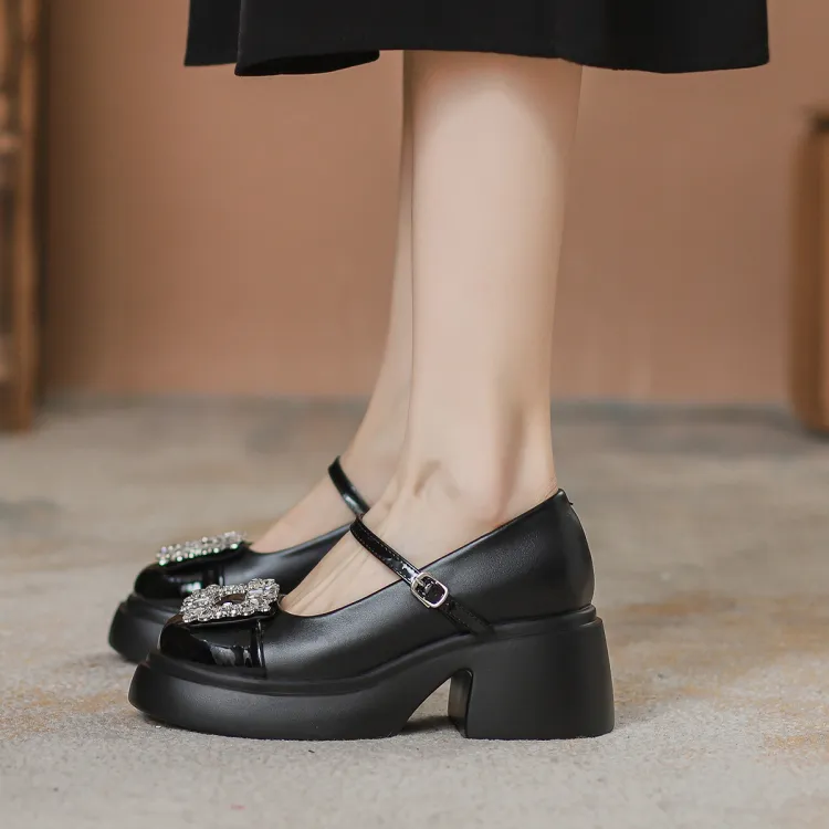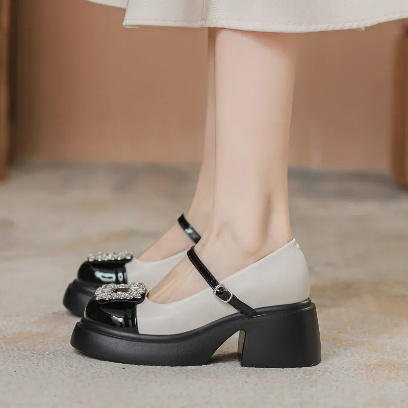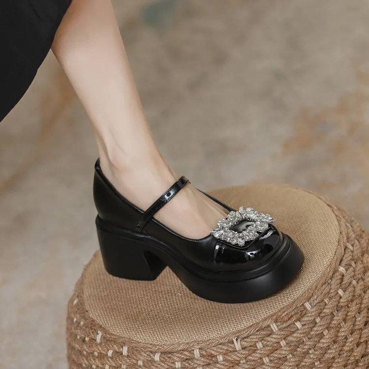 Pounise Грубый каблук Мэри Джейн туфли 7 см женские